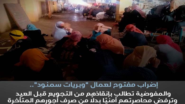 إضراب مفتوح لعمال “وبريات سمنود”.. والمفوضية المصرية تطالب بإنقاذهم من التجويع قبل العيد وترفض محاصرتهم أمنيًا بدلًا من صرف أجورهم المتأخرة