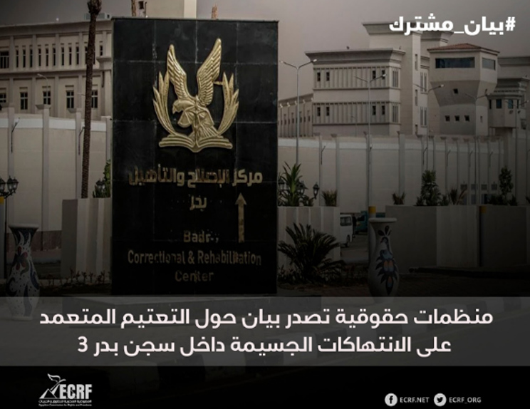 وفي 31 أغسطس 2025، أصدرت منظمات حقوقية بينها المفوضية المصرية بيانا حول التعتيم المتعمد على الانتهاكات الجسيمة داخل سجن بدر 3 في مصر. وأكدت المنظمات الموقعة على البيان أنها تتابع بقلق بالغ ما يحدث في سجن بدر 3 شرق القاهرة، حيث يتعرض المحتجزون – ومعظمهم من سجناء الرأي والمعارضين السياسيين – لانتهاكات جسيمة تهدد حياتهم وسلامتهم الجسدية والنفسية. لقد تحول هذا السجن إلى نموذج صارخ للعقاب الجماعي الممنهج، بعيدًا عن أي معايير قانونية أو إنسانية، وأضحى بمثابة أداة للإعدام البطيء.