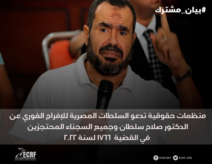 وفي أعربت 17 منظمة حقوقية بينها المفوضية المصرية، عن بالغ قلقها إزاء الأنباء التي تفيد بأن الدكتور والأكاديمي المصري صلاح سلطان – الذي يحمل إقامة دائمة قانونية في أمريكا – يعاني من أزمة صحية حرجة تهدد حياته، وأنه معرض لتزايد خطر الموت المفاجئ أثناء احتجازه في سجن بدر 1 في مصر. وحثّت المنظمات الـ17 السلطات المصرية على الإفراج الفوري وغير المشروط عن الدكتور سلطان، وأن تضمن له في هذه الأثناء الوصول العاجل للرعاية الطبية التي من شأنها إنقاذ حياته، والتي هو في أمسّ الحاجة إليها.
