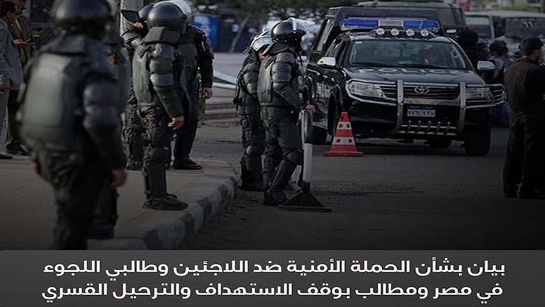 تعرب المفوضية المصرية للحقوق والحريات عن بالغ قلقها وإدانتها للحملة الأمنية الواسعة التي استهدفت اللاجئين وطالبي اللجوء في مصر منذ ديسمبر 2025 وحتى تاريخه، وما صاحبها من توقيفات جماعية، واحتجاز إداري، وإجراءات ترحيل قسري تفتقر إلى الضمانات القانونية الواجبة، بالمخالفة للدستور المصري والقوانين الوطنية والالتزامات الدولية التي تعهدت بها الدولة، بالمخالفة للأسس القانونية والإنسانية.