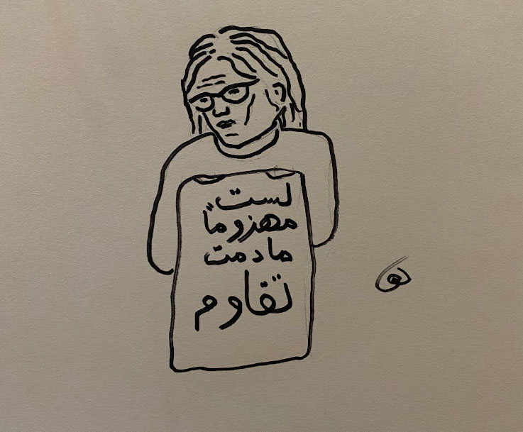 في أقسى درجات اليأس تظهر أمامي صورة الدكتورة ليلى سويف تمسك بقميص كتب عليه لست مهزوماً ما دمت تقاوم، كأنها رسالة كتبت لي، لأفيق من يأسي وأقاوم، فما خسرته لا شيء بجانب الرفاق في غزة، وبجانب أم لم تيأس وتظل تقاوم وتقاوم سعياً لحرية ابنها، سأهزم فقط إن لم أقاوم، سأهزم إن تركت اليأس يسيطر، وبذلك ينتصر الظلم، لا املك سلاح سوى ريشتي وألواني رفقاء الغربة والوحدة.
