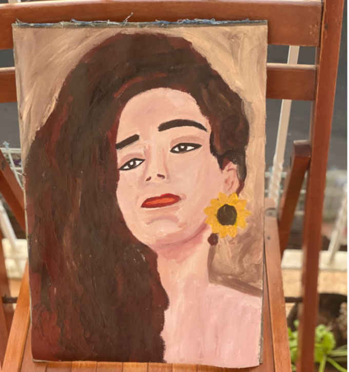 مع أني سليطة اللسان إلا أن لساني يعجر دائماً عن إخراج مشاعري في كلمات، لكن يداي يخرجا المشاعر في لوحات، رسمت تسع لوحات لريما دون النظر لصورة، فصورتها دائماً في ذهني بابتسامتها المبهجة، وبشرتها الخمرية، وعينيها الواسعتان، رسمتها في عصور وأعراق مختلفة، وأراها حولي دائماً بطيفها المنير وابتسامتها ويداها الحنونتان تربط على كتفي، وعينيها تقول دائماً قاومي.