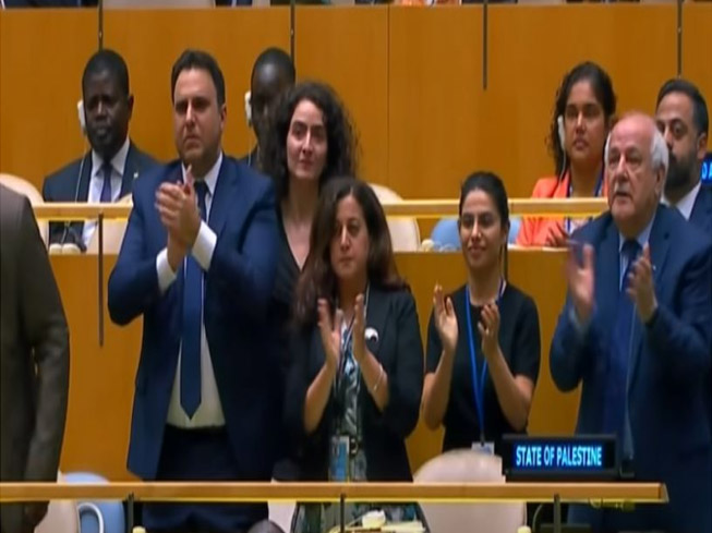 الوفد الفلسطيني في الأمم المتحدة يحتفي بإعلان الرئيس الفرنسي الاعتراف بفلسطين – مصدر الصورة: فيديو لكلمة ماكرون