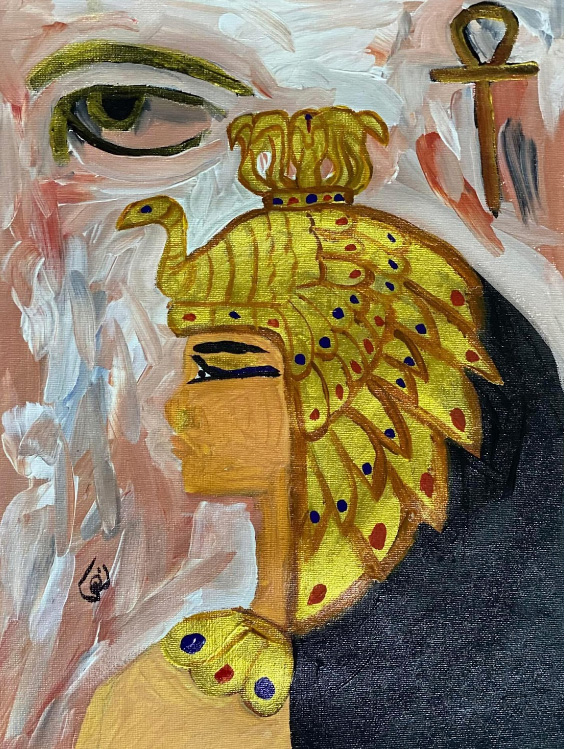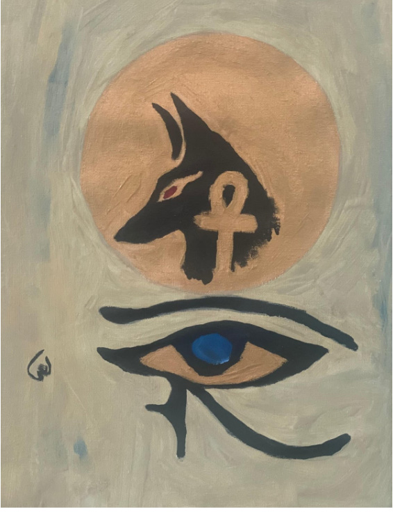 أتمسك الآن بهويتي العربية والمصرية والقضايا التي أنتمي إليها، وانتهز الفرص لأعبر عن نفسي بكوفيتي الفلسطينية وبفني، فأضيف للوحاتي الآلهة المصرية القديمة ومفتاح الحياة وعين حورس؛ وصوت الشيخ إمام حينما يطلب مني الزملاء تشغيل أغاني مصرية، دائماً خياري الأول الشيخ إمام عيسى وأظل أترجم ما يقول، وأشعر أن نواره تراقبني فأذكر الفاجومي وكتاباته، وعمرهما اللذان قضيا في السجن معاً، وأروي القصة.