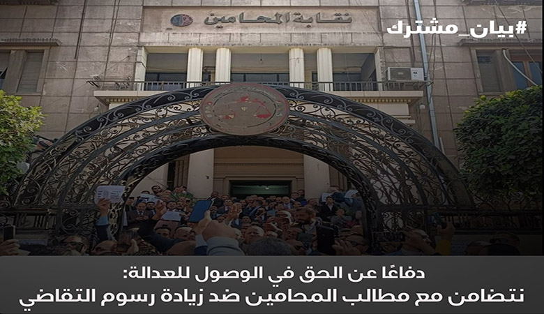 إننا إذ نكرر تضامننا مع مطالب المحامين المشروعة، وعلى رأسها عدم فرض رسوم إلا بموجب قانون، ووقف العمل بقرارات فرض رسوم التقاضى غير الدستورية تحت مسمى خدمات الميكنة، فإننا نشدد على حق نقابة المحامين في ممارسة دورها، بكافة الطرق القانونية وكافة أشكال التعبير السلمية، وننبه لخطورة استخدام الهيئات القضائية السلطة المخولة لها في تقيد حق الاحتجاج السلمي للمحامين وحق التقاضي لكافة المواطنين.