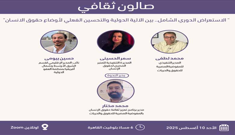 الصالون الثقافي “برنامج تعزيز ثقافة حقوق الإنسان” “الاستعراض الدوري الشامل… بين الاَلية الدولية والتحسين الفعلي لاوضاع حقوق الانسان” (UPR)