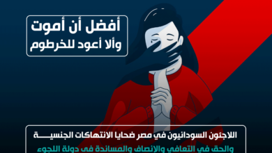 “أفضل أن أموت وألا أعود للخرطوم”.. “المفوضية المصرية” تطلق تقريرها حول الانتهاكات الجنسية للاجئين السودانيين قبل حضورهم إلى مصر كسلاح في الحرب السودانية