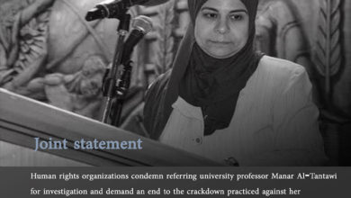 Human rights organizations condemn referring university professor Manar Al-Tantawi for investigation and demand an end to the crackdown practiced against her