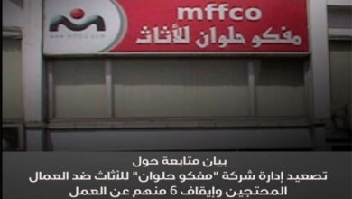 بيان متابعة حول تصعيد إدارة شركة “مفكو حلوان” للأثاث ضد العمال المحتجين وإيقاف 6 منهم عن العمل
