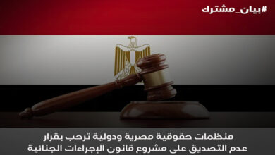 منظمات حقوقية مصرية ودولية ترحب بقرار عدم التصديق على مشروع قانون الإجراءات الجنائية