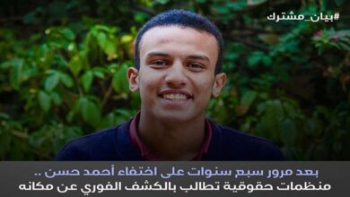 بعد مرور سبع سنوات على اختفاء أحمد حسن .. منظمات حقوقية تطالب بالكشف الفوري عن مكانه